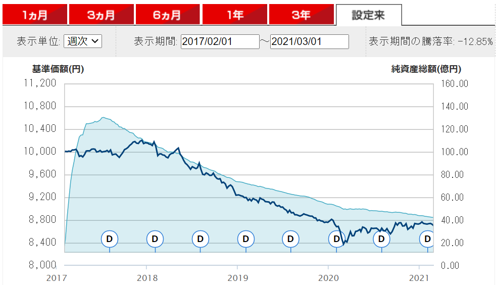 基準価額の推移は以下のようになっています。
