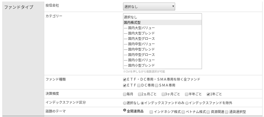 ▶カテゴリー:「国内株式型」を選択します