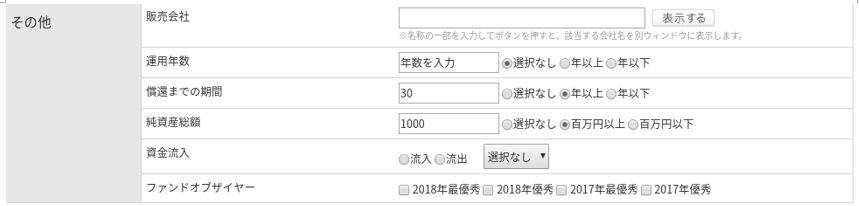 ▶ファンド種類:「DC専用」と「SMA専用」はチェックを外しておきます。DCとは確定拠出年金専用のファンドとなります。SMAとはラップ口座となります。
